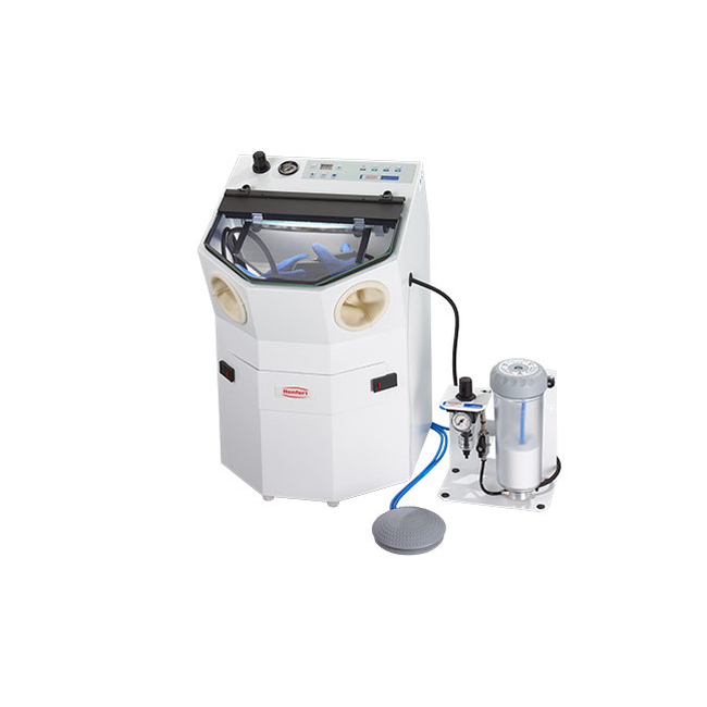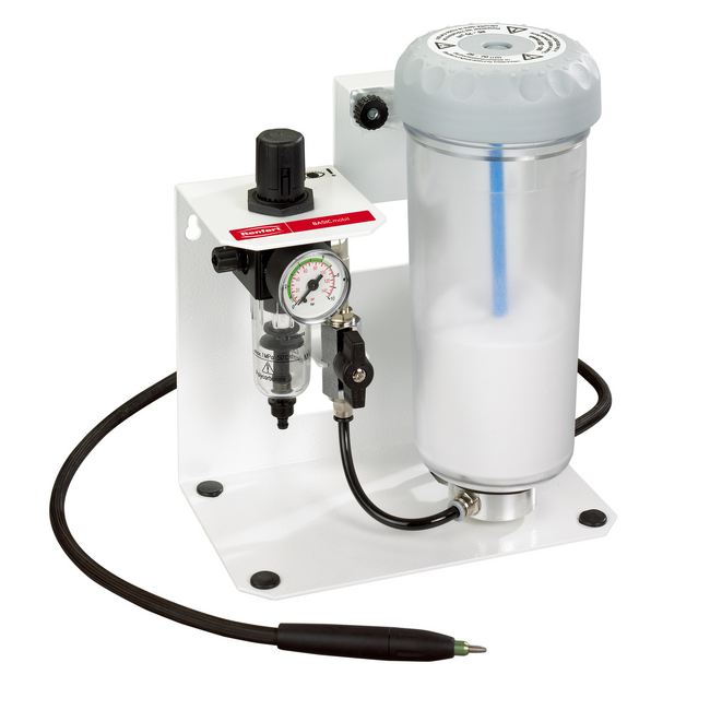 В пескоструйном аппарате Basic mobil Renfert упростил пескоструйную технику до основной конструкции. Благодаря этому для мобильного применения достаточно просто подключить прибор к сжатому воздуху.
