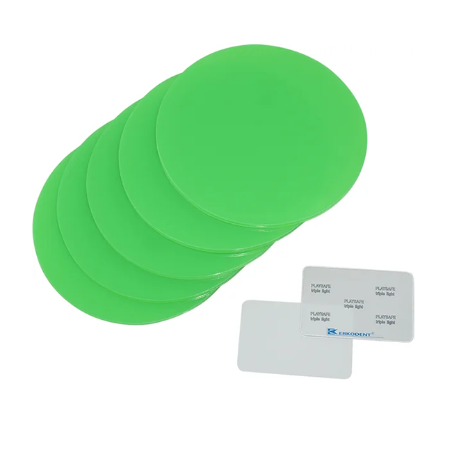 Описание Playsafe triple - одноцветные термоформовочные пластины, толщина 5.5 мм, круглые, диаметр 120 мм, 5 шт. | Erkodent (Германия)