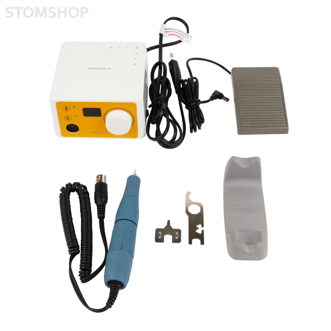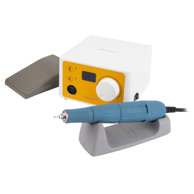 Аппарат Marathon 3N c цифровым дисплеем и моментальным переключением реверса. Имеет цифровую индикацию скорости вращения фрезы, реверс можно переключать на ходу, не дожидаясь остановки вращения фрезы.