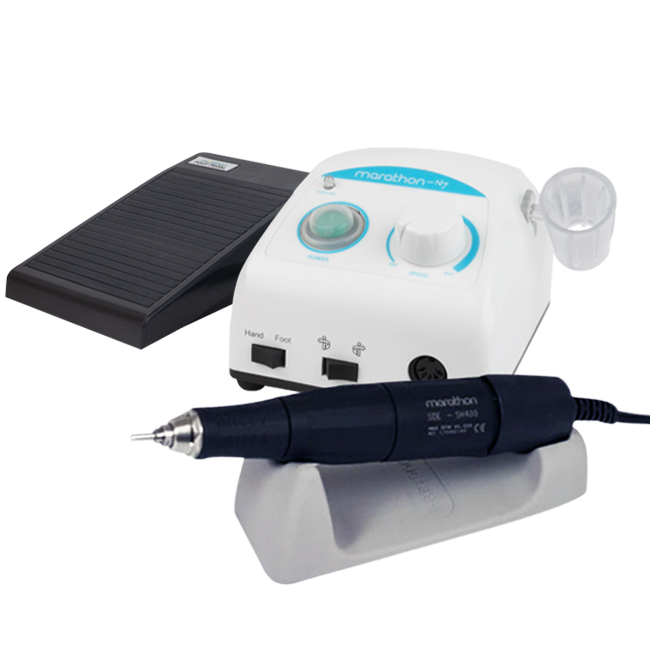 Микромотор зуботехнический в комплекте: блок управления для аппарата шлифовального зуботехнического, марки "Marathon", Marathon N7 (эл. мощность 45 Вт) с пластиковым держателем наконечника (SMT-HSEN) и подставкой, наконечник-микромотор SDE-SH400 (40000 об/мин, вращающий момент 5Н*см), педаль FS60 плавного регулирования скорости и техпаспорт, SMT (Корея).