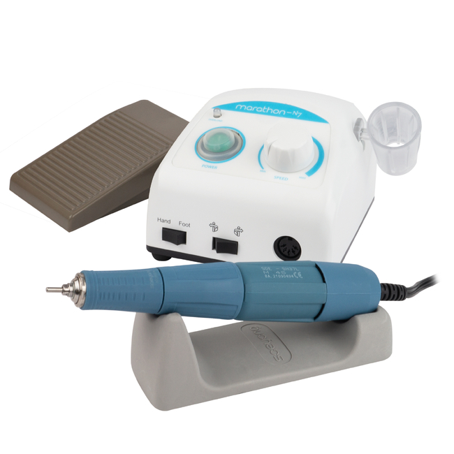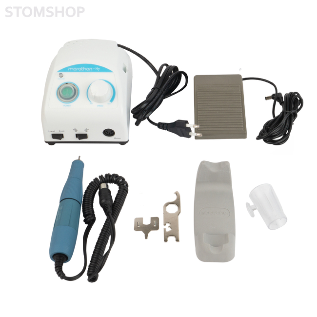 Микромотор зуботехнический в комплекте: блок управления для аппарата шлифовального зуботехнического, марки "Marathon", Marathon N7 (эл. мощность 45 Вт) с пластиковым держателем наконечника (SMT-HSEN) и подставкой, наконечник-микромотор SDE-SH37L М 45 (40000 об/мин, вращающий момент 4,5 Н*см), педаль SFP-27 включения/выключения скорости и техпаспорт, SMT (Корея).