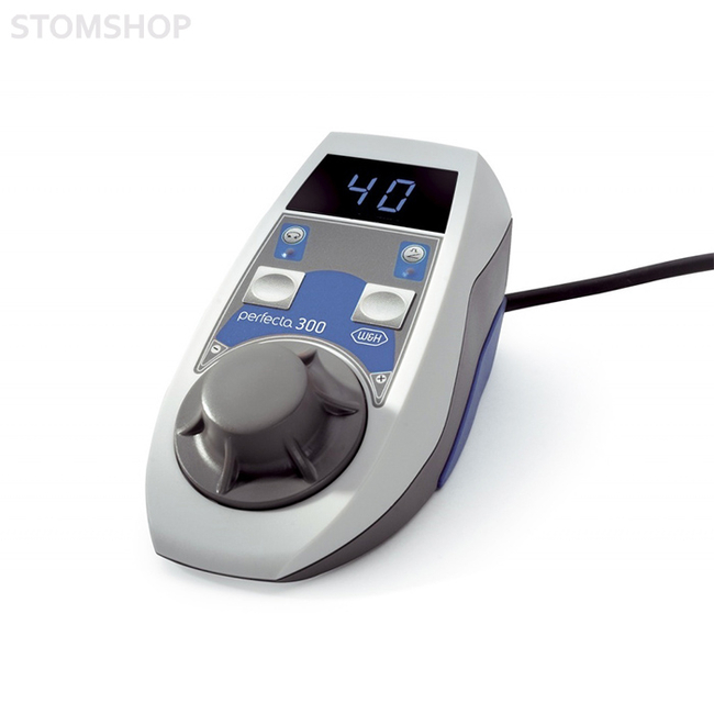 Perfecta 300 LA-323 T - настольная версия, состоит из трех основных модулей: моторного наконечника, блока управления и устанавливаемого отдельно пульта управления. С помощью пульта производятся все настройки, активируется реверс мотора, а на экране постоянно отображаются функции и режимы работы.