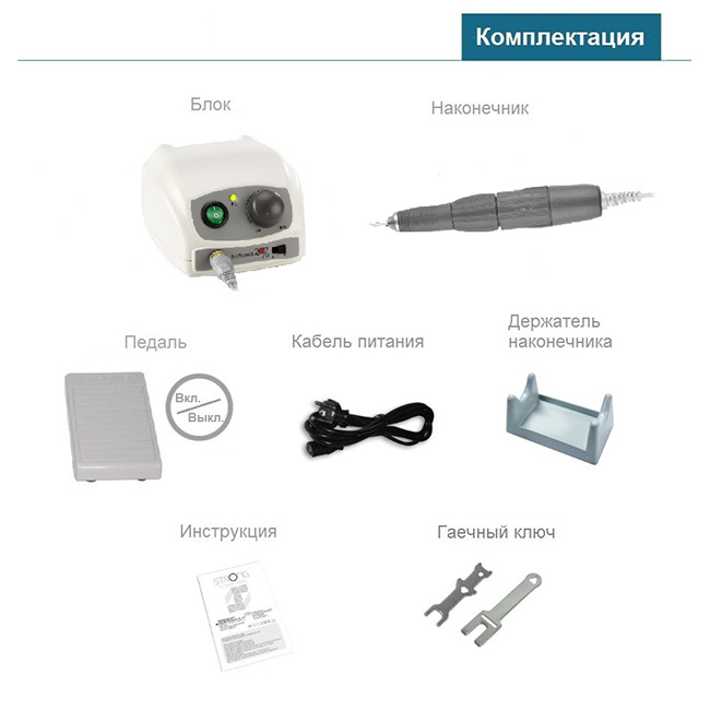 Щеточный микромотор STRONG 207В с наконечником 107 подходит для шлифовки любого материала.