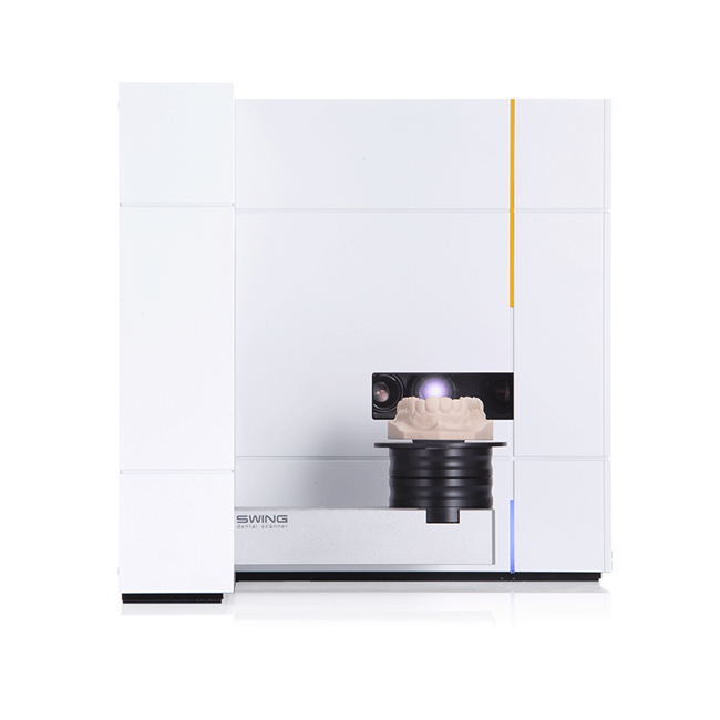 Swing – это современный и простой сканер с большей частью основных элементов, необходимых для зуботехнической лаборатории. Имеет L-образную форму, оснащен тремя 1,3-мегапиксельными камерами.