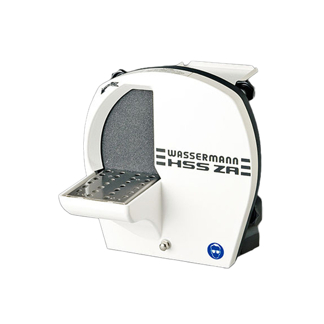 HSS-ZA – комбинированный триммер с дополнительным полировальным шпинделем предназначен для использования в зуботехнических лабораториях и применяется для мокрой обработки. Широкий спектр применения включает возможность альтернативного использования плёночного диска с двухсторонним корундовым покрытием, а также шлифовального диска с алмазным покрытием Dia–Quick. Охлаждение мотора осуществляется через внешний кожух, исключая загрязнение мотора. Устройство работает практически бесшумно и без вибрации.