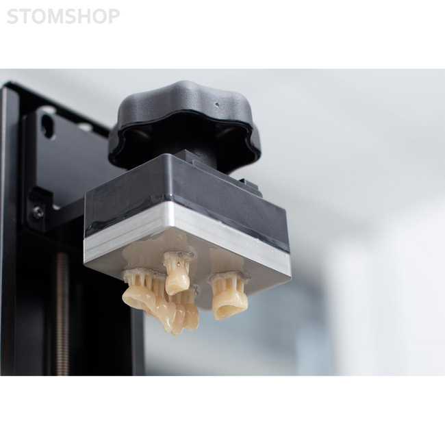 Он отлично подойдёт для печати коронок, вкладок, накладок, мостов, а также раздельных моделей. В зависимости от ваших задач, на печатной платформе можно поместить до 20 коронок, или 1 полноразмерную модель.