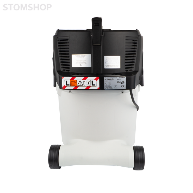 Система Free-Filter –чистка фильтра нажатием на кнопку Известная ситуация: при отсасывании мелкозернистой пыли поры фильтра тонкой очистки и мешка- пылесборника или суконного фильтра очень быстро засоряются. Это обычно приводит к следующему: Мощность всасывания отчетливо снижается, хотя мешок-пылесборник еще не полон. Фильтр тонкой очистки изнашивается быстрей. Объем мешка для пыли используется не полностью. Vortex compact 3 L устраняет эти проблемы – одним нажатием на кнопку. Всасывающий шланг закрывается ладонью, другой рукой нажимается кнопка системы "Free-Filter" . Технология очистки фильтра точной очистки и внутренних стенок мешка-пылесборника весьма хитроумна – она производится при помощи воздуха, техник не должен для этого открывать пылесос и подвергать себя опасности вдыхать при этом мелкую пыль.