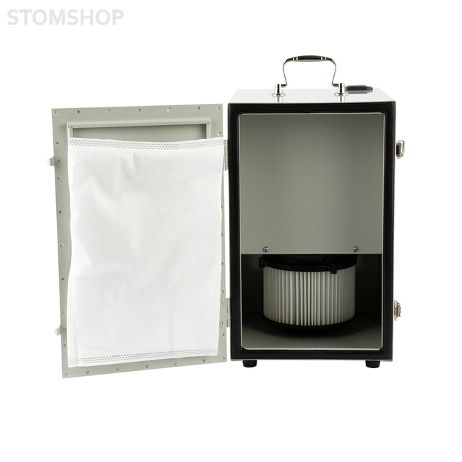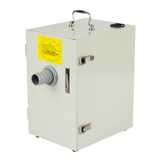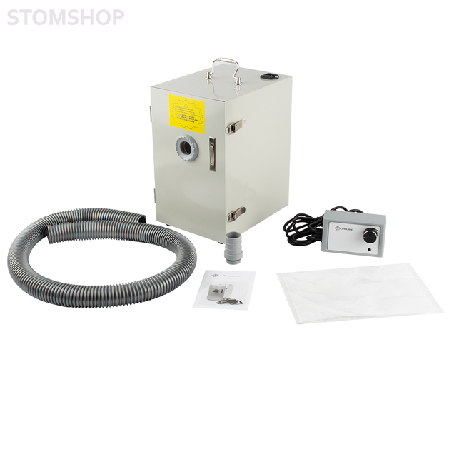 Зуботехнический пылесос JG-207 для одного рабочего места. Устройство применяется в зуботехнических лабораториях и предназначено для удаления пыли и мелких отходов, которые образуются при обработке зуботехнических материалов. Пылесос подключают к триммерам, сверлильным и разрезным станкам, к финагелям зуботехнических столов, а также к любому другому обрабатывающему оборудованию, где необходим отвод загрязнений из рабочей зоны.