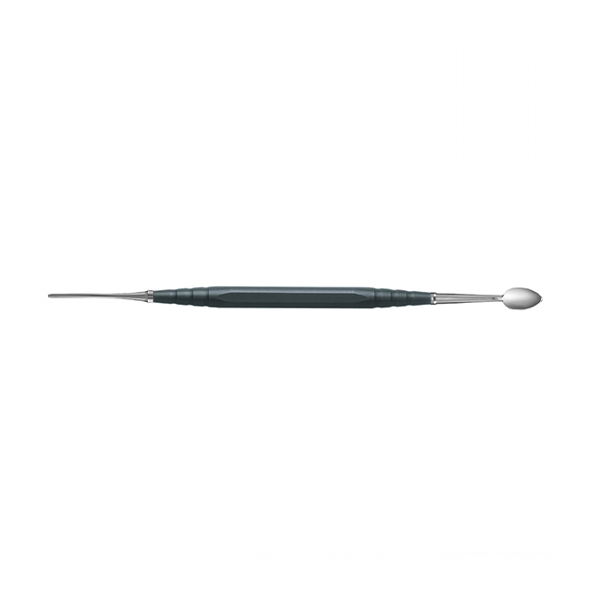 Инструмент моделировочный для воска, форма E1/F2, двусторонний, удлиненная черная ручка. Несъемные насадки из нержавеющей стали, форма E1/F2. Ручка черная, длина 105 мм. Лабораторный инструмент не рассчитан на автоклавирование.