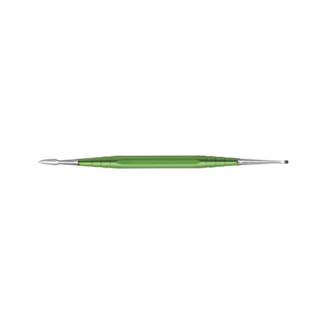 Инструмент моделировочный для пластмасс, форма RA8/RB3, двусторонний, зеленая ручка. Произведен из нержавеющей стали. Рабочие части разной формы, с тефлоновым покрытием. Лабораторный инструмент не рассчитан на автоклавирование.