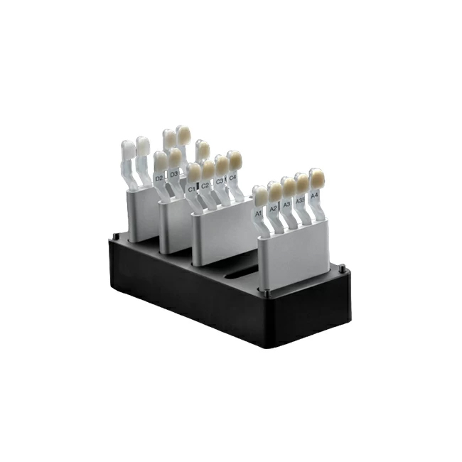 My Shade Guide – набор для создания расцветки искусственных зубов. Набор включает все компоненты, инструменты и аксессуары для изготовления собственных образцов керамики и собственных персонифицированных расцветок высокого качества.