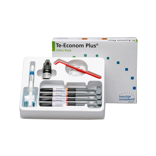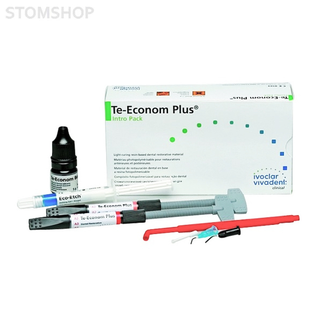 Пломбировочный рентгеноконтрастный материал Te-Econom Plus представляет собой светоотвердевающий, мелкозернистый гибридный композит (тетрамикрогибрид). Текучее вещество застывает под действием синей части света галогенной лампы.