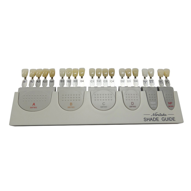 Шкала расцветок Shade Guide была создана на основании тщательного анализа окраски натуральных зубов пациентов с учётом обобщенного опыта многочисленных зубных техников и соответствует цветам керамических масс, выпускаемым фирмой Noritake. Благодаря этому подбор цвета не вызывает никаких сложностей.