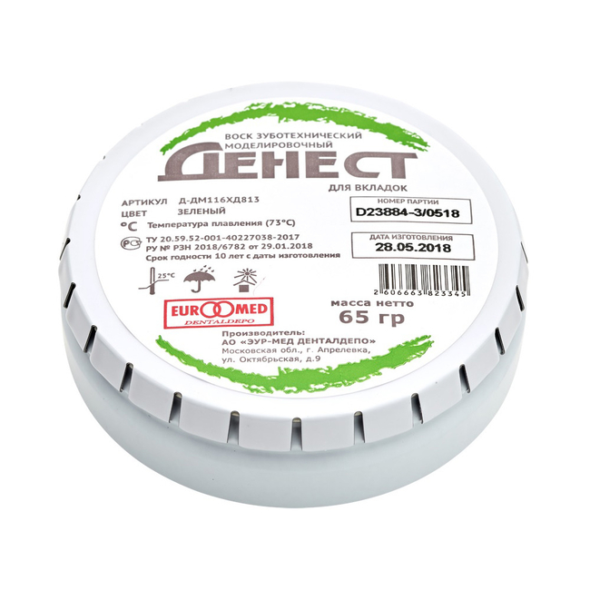 Воск зуботехнический ДЕНЕСТ моделировочный для вкладок, зеленый, 65 г | ЭУР-МЕД Денталдепо (Россия) Воск зуботехнический ДЕНЕСТ моделировочный для вкладок, зеленый, 65 г | ЭУР-МЕД Денталдепо (Россия)