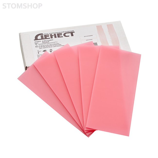 Воск зуботехнический средней твердости, предназначен для моделирования базисов съемных протезов. Форма выпуска: пластины, толщиной 2 мм.
